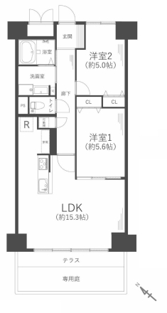 | 間取内容 | LDK15.3帖 洋室6.6帖 洋室5.0帖 | ||